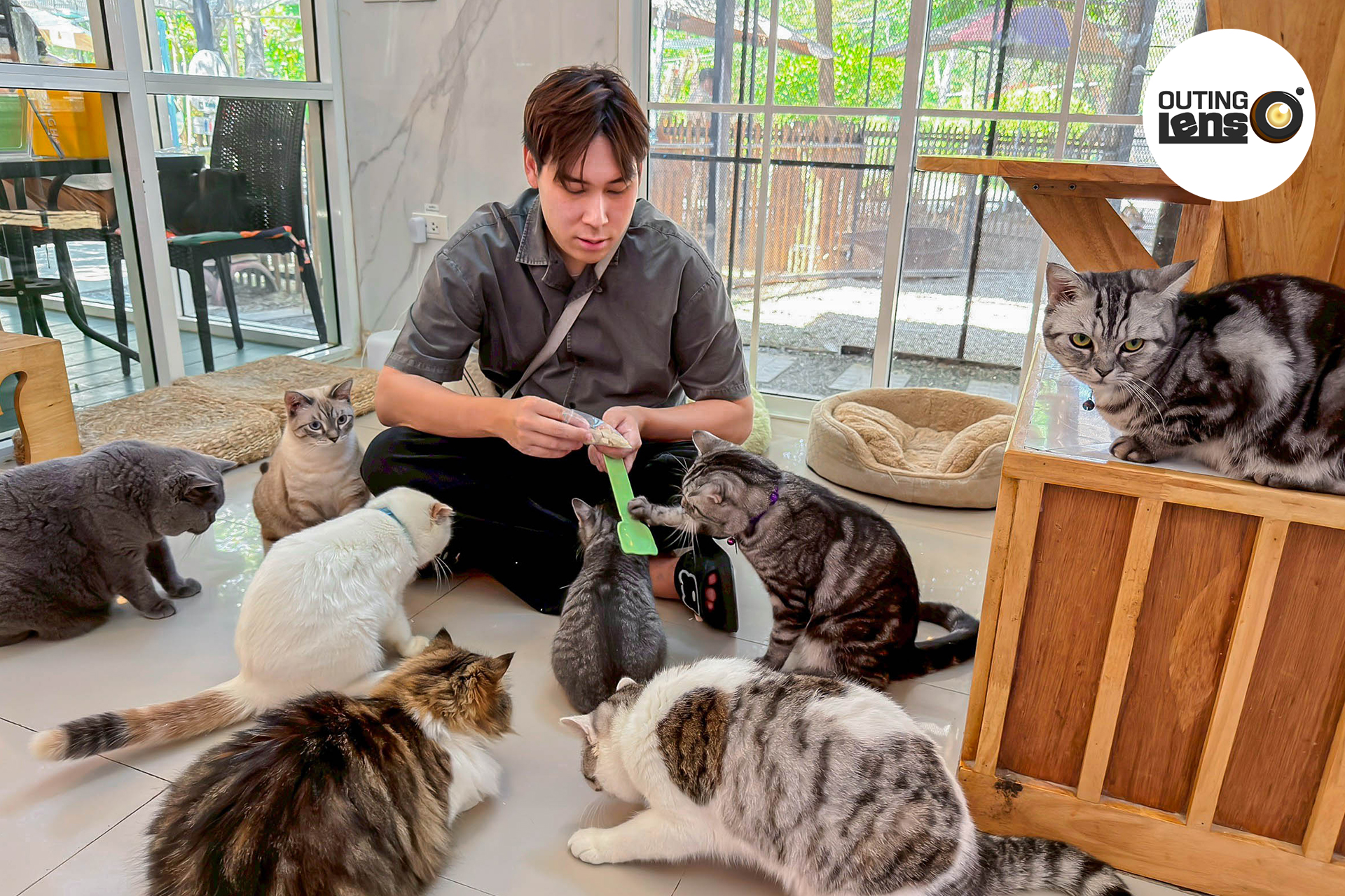 สำหรับสายทาสแมว บอกเลยว่าห้ามพลาดเด็ดขาด ได้มานั่งกับน้องเป็นสิบๆ ตัว เล่นกับน้องแบบจุใจ แล้วแมวแต่ละตัว ขี้อ้อน ขี้เล่นเวอร์ ชอบเอาใจ และชอบต้อนรับแขกสุดๆ ยิ่งมีของกินมาให้ก็ไม่มีตัวไหนออกห่างจากเราได้เลย