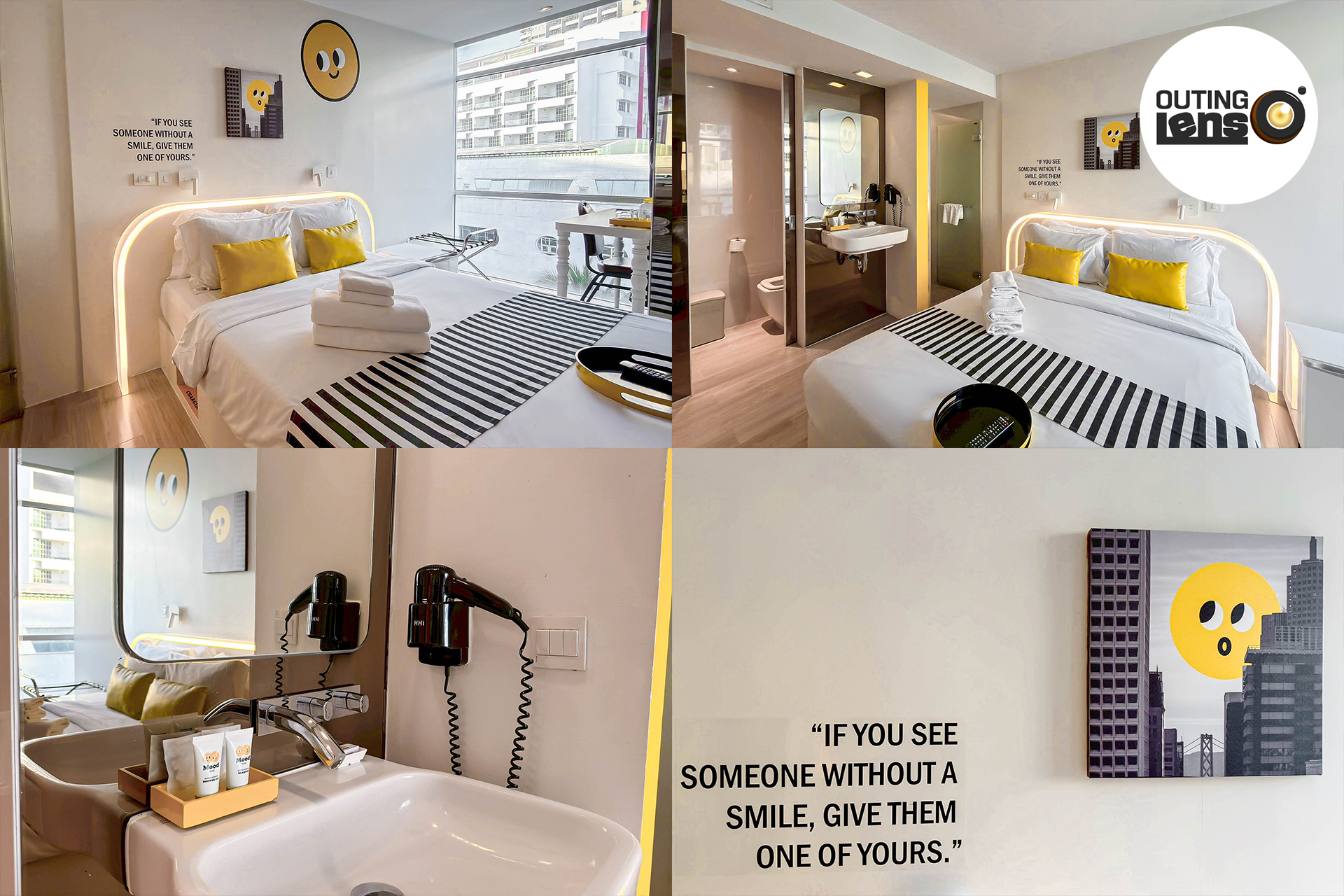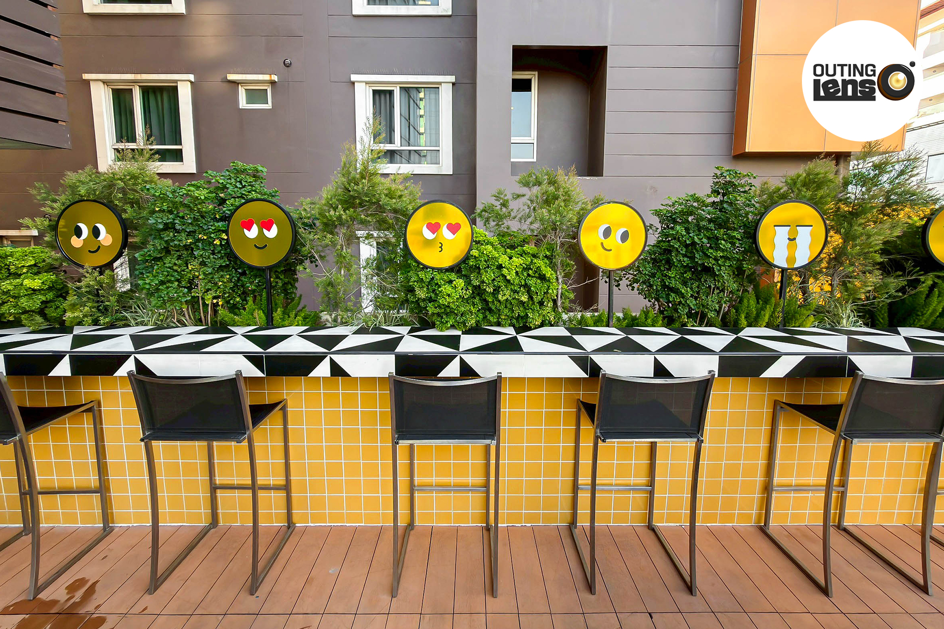 ทันทีที่เข้ามา จะได้สัมผัสกับบรรยากาศความน่ารักของอิโมจิหน้ายิ้มที่ตกแต่งอยู่ทั่วโรงแรม แล้วสีเหลืองของอิโมจิคือเด่นมาก ยิ้มต้อนรับตลอดทาง สายคอนเทนต์ สายถ่ายรูป หรือ สาวๆ ชอบแน่นอน เพราะมุมถ่ายรูปเพียบ ถูกใจสายโซเชี่ยล