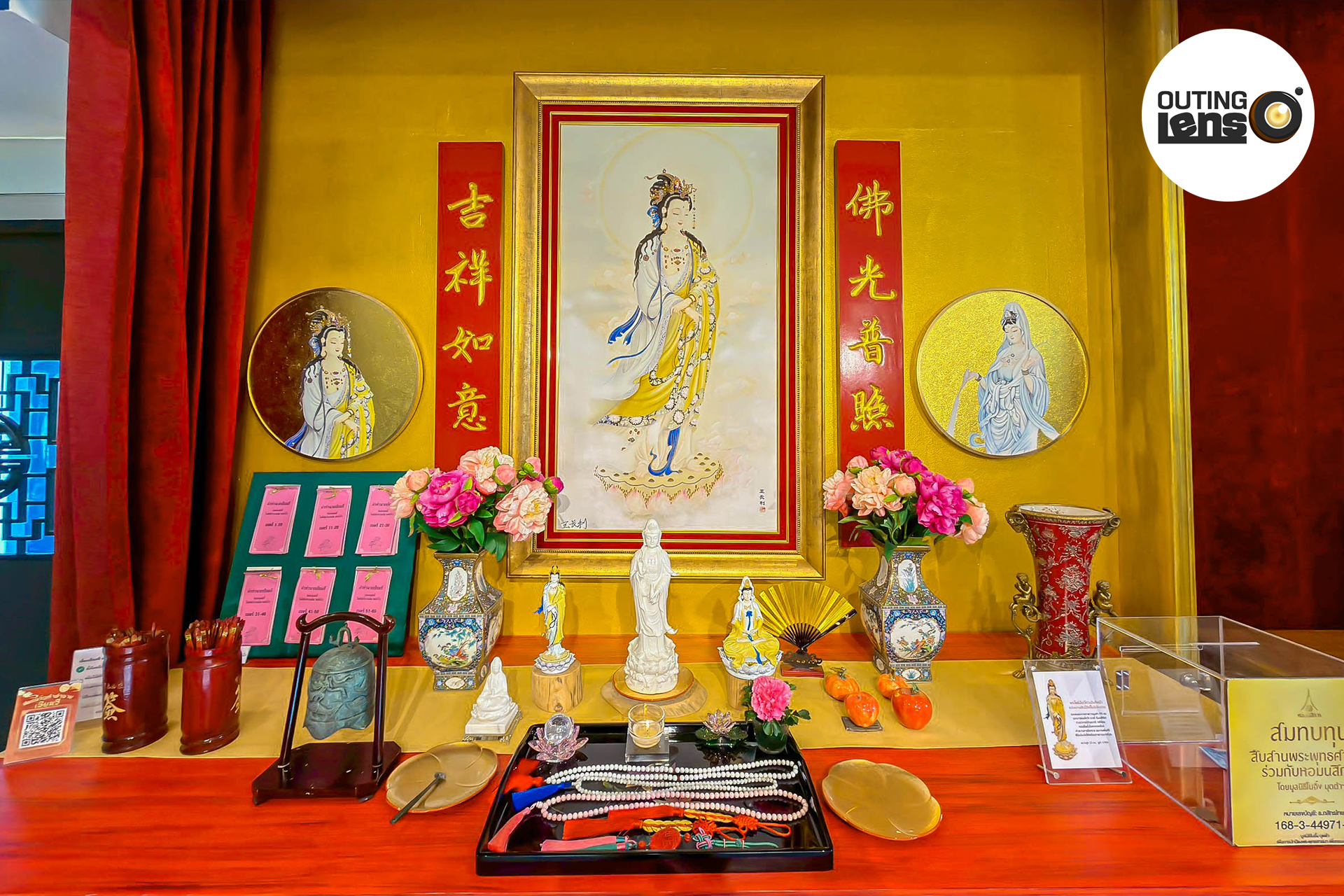 นอกจากนี้ บริเวณด้านนอกยังมี “หอเจ้าแม่กวนอิม” ให้สักการะ ขอพรด้านความเจริญรุ่งเรือง ความมั่งคั่งร่ำรวย โดยมีเคล็ดลับความเชื่อว่า หากเคาะระฆังจำนวน 7 ครั้ง จะช่วยเสริมให้พรที่ขอสมหวังมากยิ่งขึ้น และยังสามารถเลือกซื้อของมงคลติดมือกลับบ้านได้อีกด้วย