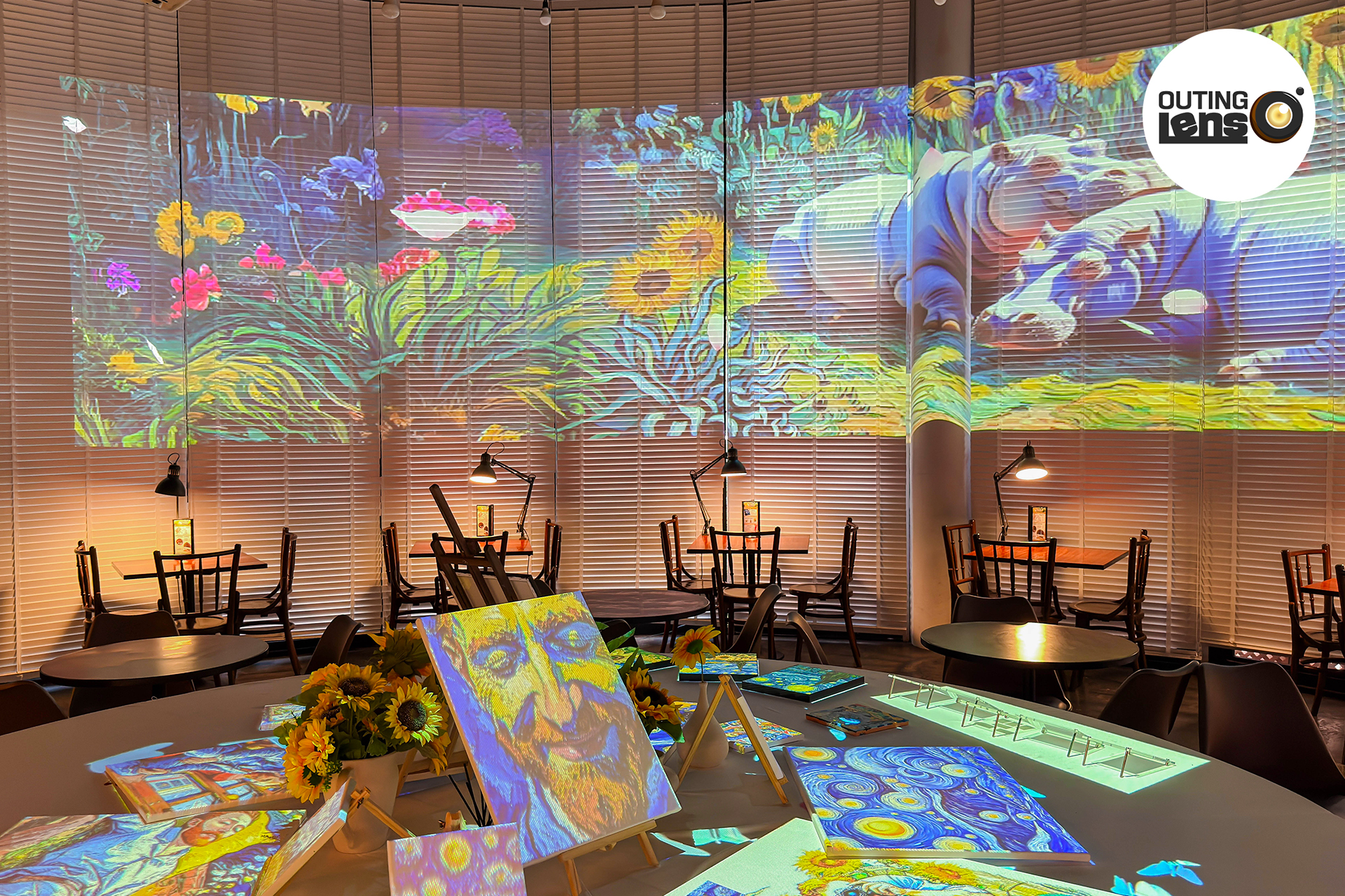 อีกมุมที่ห้ามพลาดคือโต๊ะที่ฉายผลงานของ Vincent van Gogh ลงไปบนพื้นโต๊ะ ทำให้ภาพดูมีชีวิต เคลื่อนไหวได้ เก๋มาก ถ่ายรูปก็สวย นั่งดูเพลินมาก