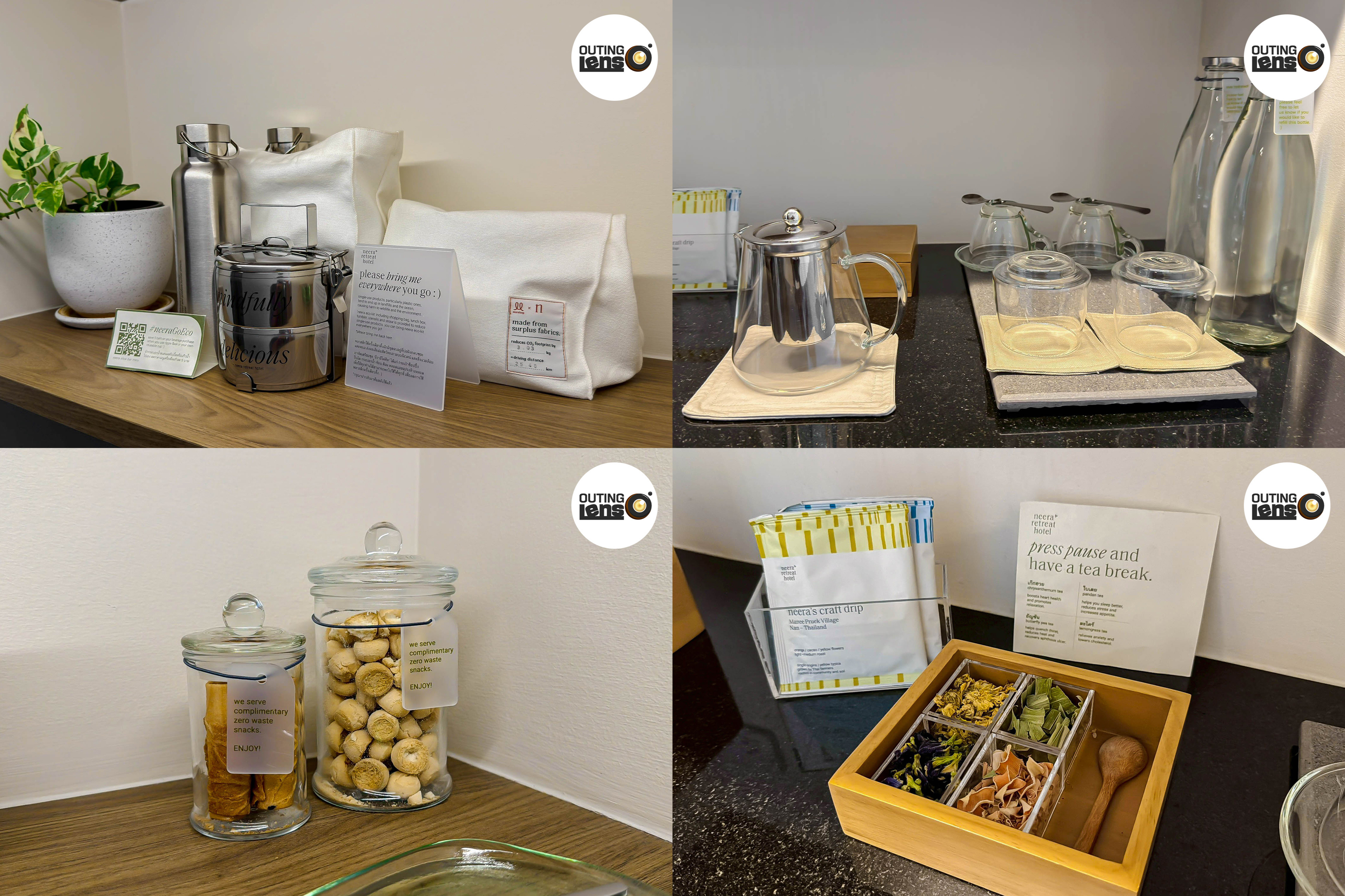 นอกจากนี้ ขนมต้อนรับที่จัดเตรียมไว้ในห้องยังมาในรูปแบบขนมไทยบรรจุในขวดโหลอย่างเรียบร้อย สะท้อนถึงความใส่ใจทั้งในด้านวัฒนธรรมและสิ่งแวดล้อม