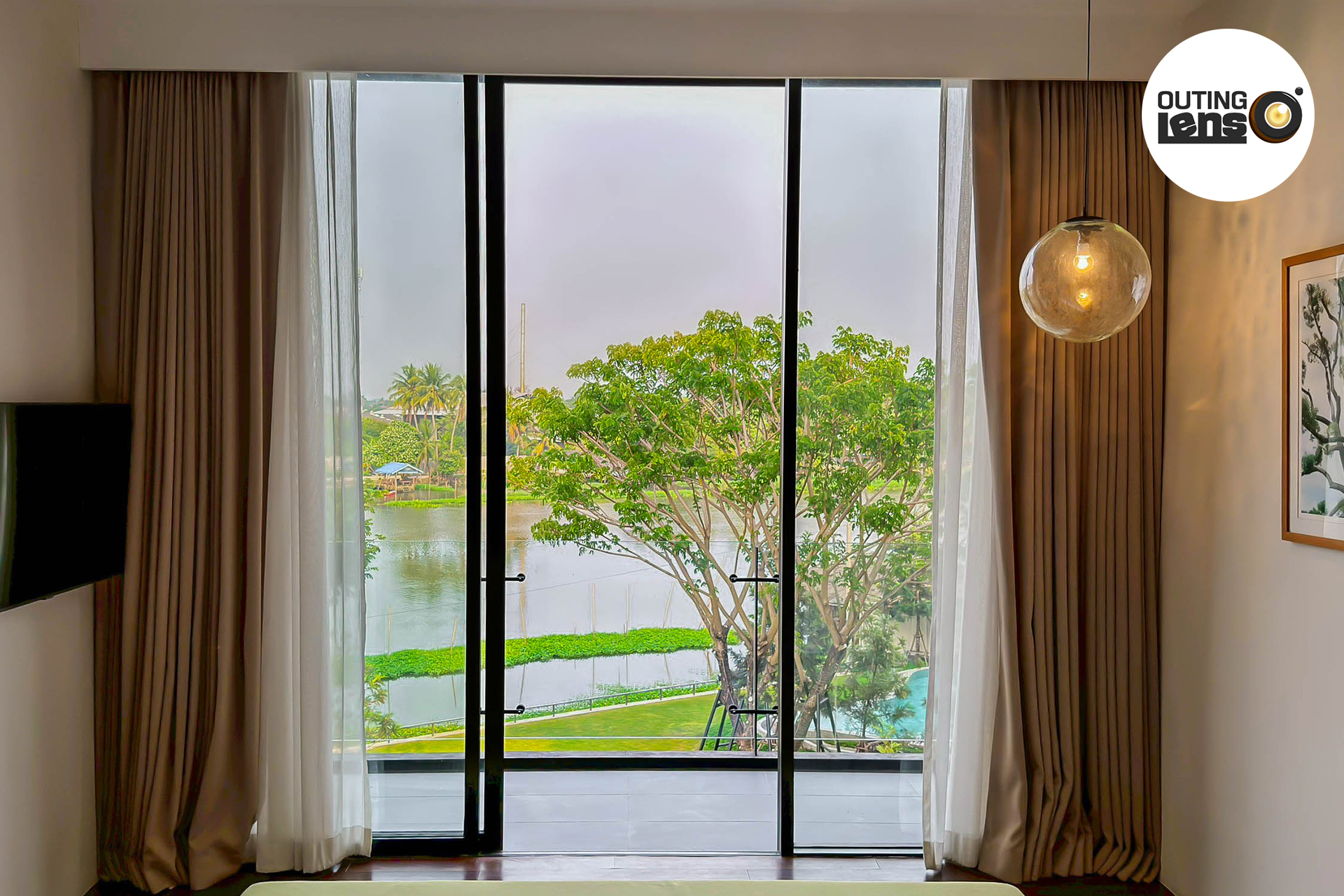 เรามาพูดถึงในส่วนของห้องพักกันบ้าง ห้องพัก มาในโทนเรียบสงบ ให้ความรู้สึกผ่อนคลายคล้ายสปา ภายในห้องมีระเบียงส่วนตัวที่สามารถมองเห็นทั้งสระว่ายน้ำและวิวแม่น้ำ ลมพัดผ่านเบา ๆ ช่วยเติมเต็มบรรยากาศการพักผ่อนได้อย่างลงตัว สิ่งอำนวยความสะดวกก็จัดมาอย่างครบครัน ไม่ว่าจะเป็นตู้เย็น ตู้เซฟ เครื่องทำน้ำอุ่น รวมถึงขนมและเครื่องดื่มภายในห้อง