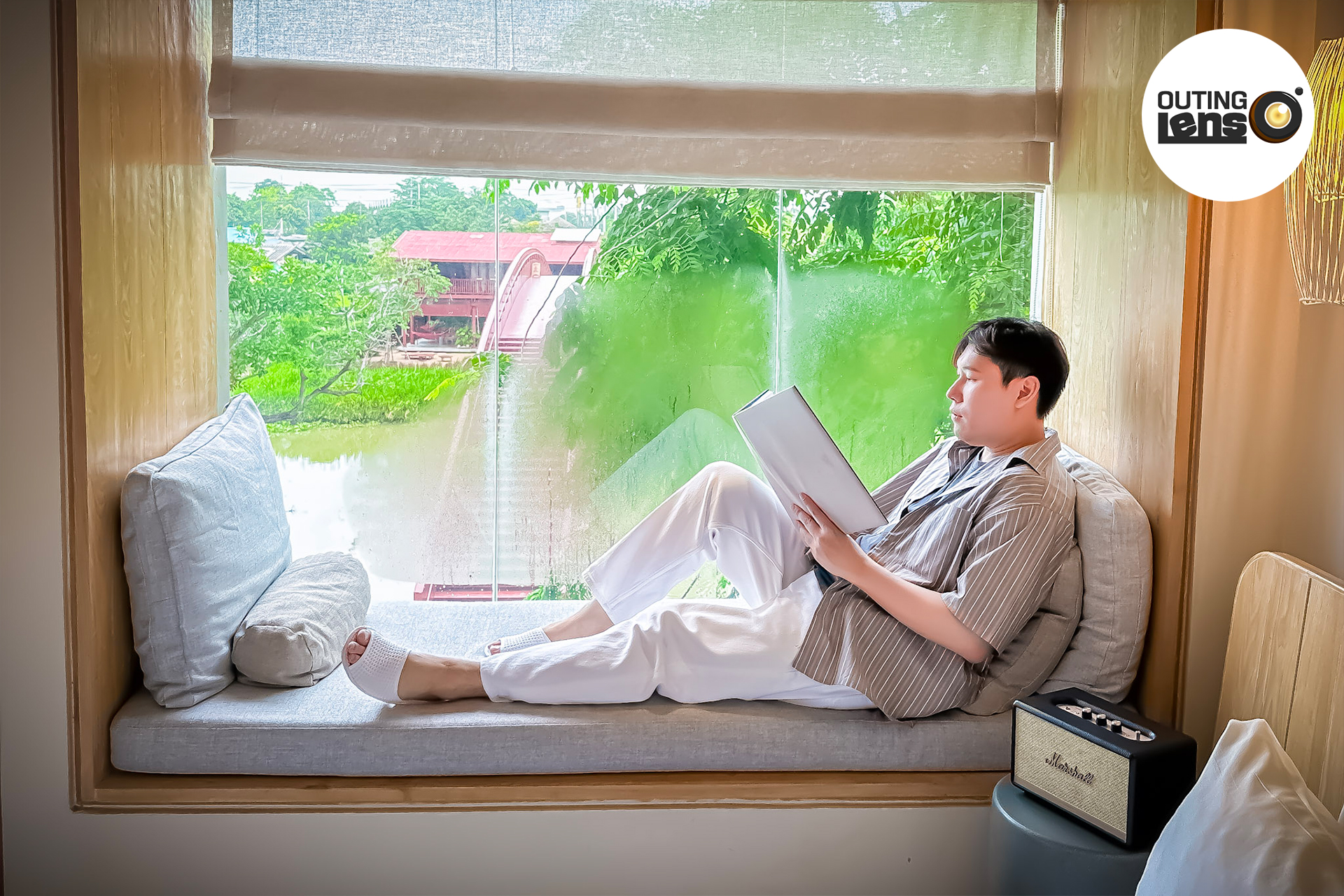 ห้องพักที่นี่สะดวกสบาย ของใช้ครบครัน บรรยากาศรอบๆ ก็ดีมาก โอบล้อมไปด้วยธรรมชาติ มีมุมพักผ่อนและมุมถ่าย เยอะอีก โดยเฉพาะ มุมพักผ่อนริมสระน้ำ