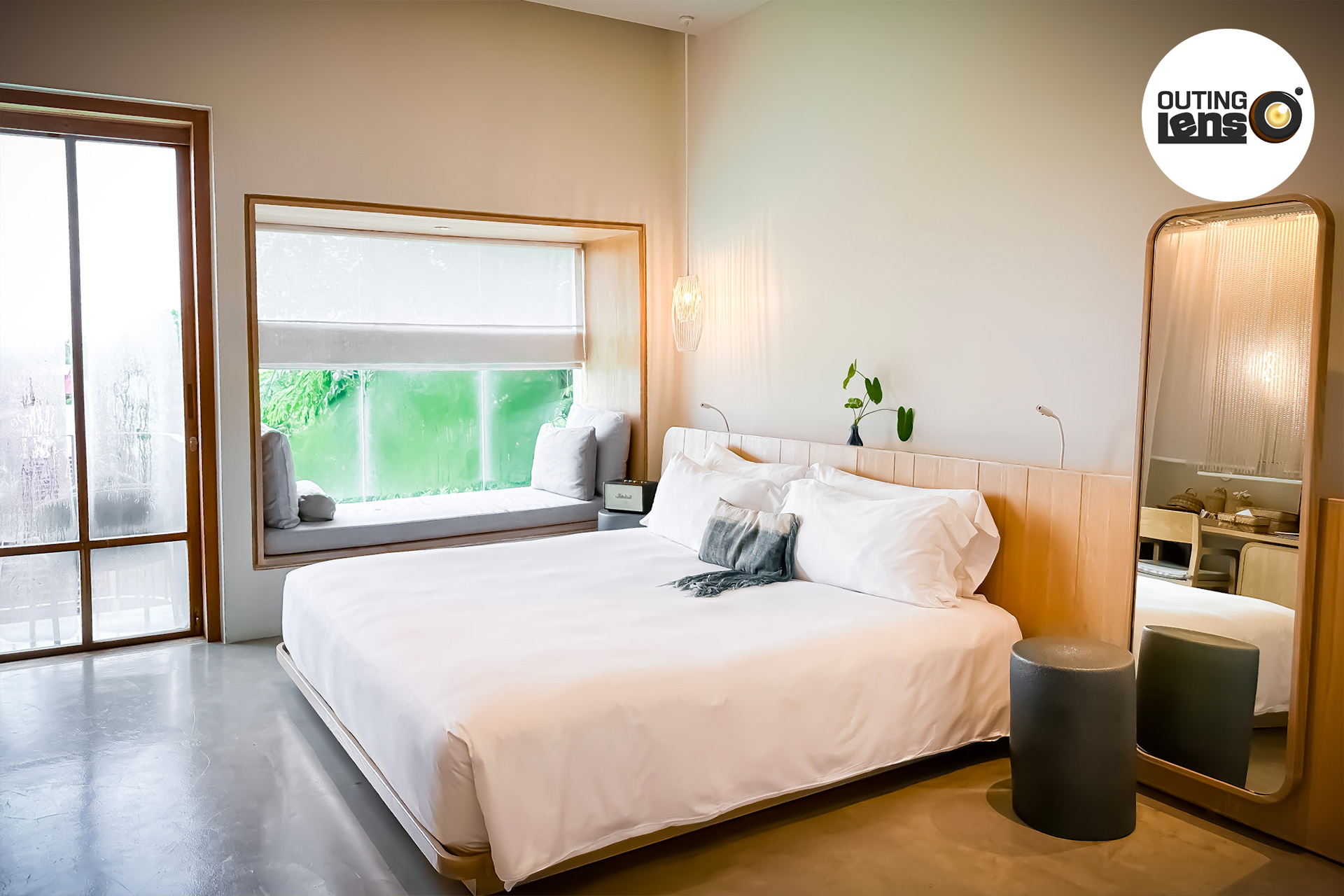 ภายในห้องจะรู้สึกโปร่ง โล่ง สบาย พร้อมกิมมิกเล็กๆ ที่มุมห้อง มีบานกระจกบานใหญ่เหมือนหน้าต่าง พร้อมโซฟาให้นั่งดูวิว พักผ่อนสบายมากๆ💕